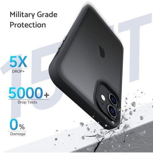 Anqrp iPhone11 用 ケース 半透明 耐衝撃 滑り止め 米軍MIL規格 指紋防止 マット感ケース ストラップホール付き ワイヤレス充電対応 スマホケース アイフォン 11 カバー 6.1インチ マットブラック 12