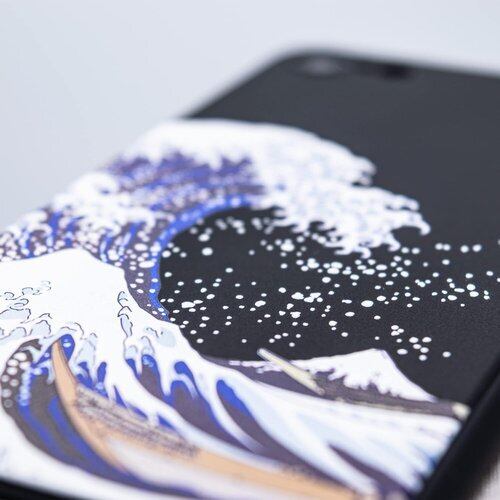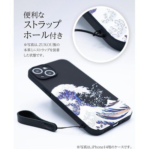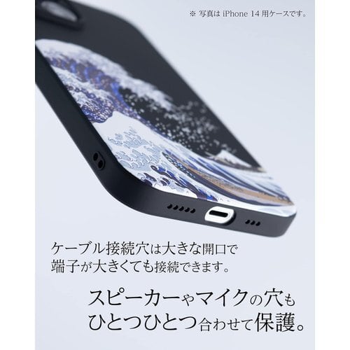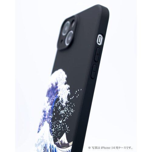 葛飾北斎の浮世絵、富嶽三十六景のひとつ「神奈川沖浪裏」をモチーフにデザインし、3D立体UVプリントで表現したユニークな iPhone 14 Pro ケースです。さらっとした触り心地の、つや消しのマットな黒いソフトケースに3D立体UVプリントで表現されています。