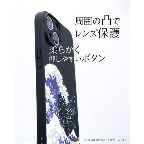 和風 北斎 立体 3D 浮世絵 iPhone 14 Pro ソフト 和柄 ケース 黒 マット ブラック 13