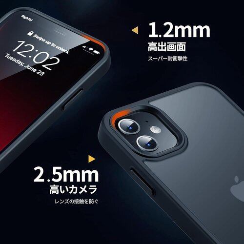 iPhone 11 用 ケース 半透明 衝撃吸収 米軍MIL規格取得 マット感 黄ばみなし レンズ全面保護 耐衝撃ストラップホール付き 6.1インチ アイフォン 11用カバー ブラック 35