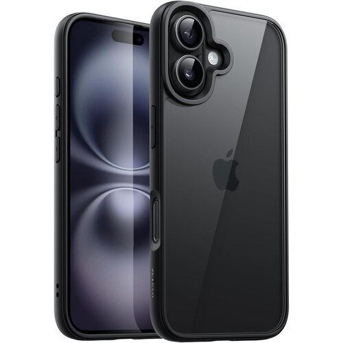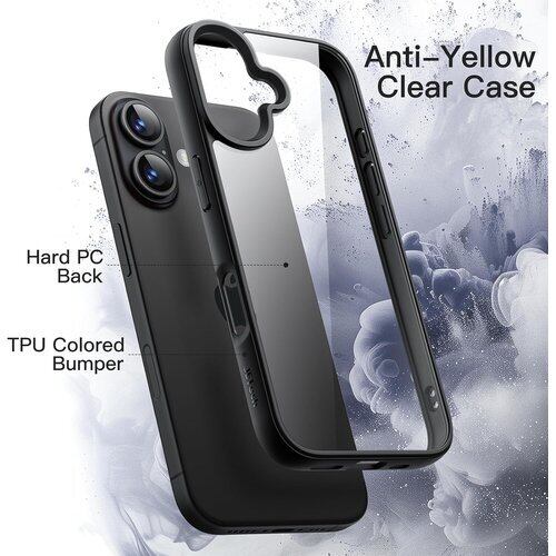 JETech iPhone 16 6.1インチ用 ケース 耐衝撃スマホバンパーカバー ソリッドカラー マットTPUフレーム 傷つけ防止 クリアバック ブラック 42