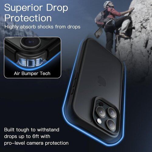 JETech iPhone 16 Pro 6.3インチ用 マットケース 耐衝撃性ミリタリーグレードの落下保護 つや消しの半透明背面 スマホカバー 指紋防止