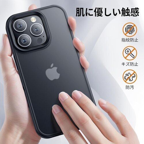 iPhone 16 Pro 用 ケース 半透明 衝撃吸収 米軍MIL規格取得 マット感 黄ばみなし レンズ全面保護 耐衝撃ストラップホール付き 6.3インチ アイフォン 16 Pro用カバーラネ マットブラック 49