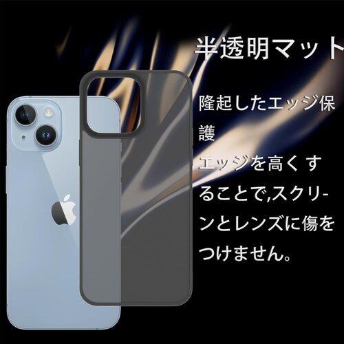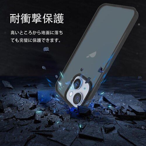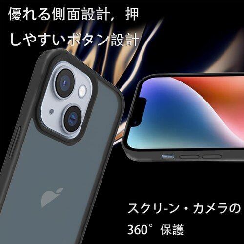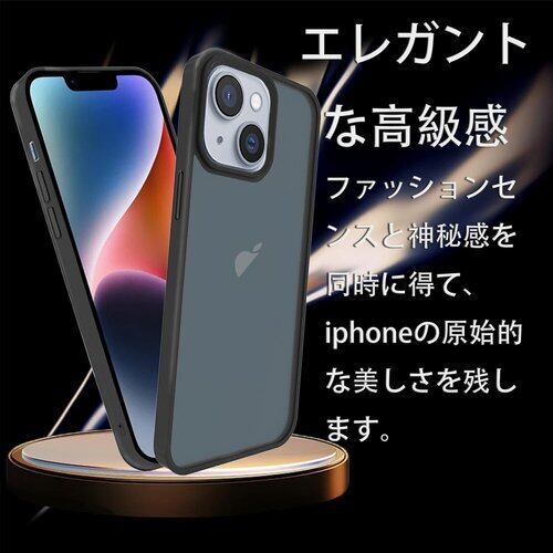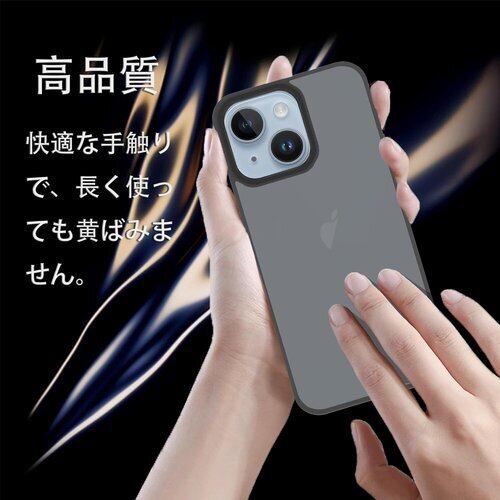 スマホケース iPhone 14 ケース 米軍MIL規格 肌触りも良い 半透明 耐衝撃 超軽薄 指紋防止 黄変防止 アイフォン14 保護 カバー ブラック 53