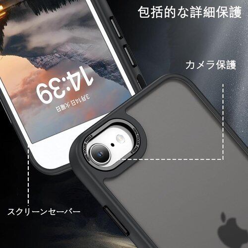 YINLAI iPhone 6/6S/7/8/SE 2020 /SE 2022 専用 ケース カバー スマホケース|米軍MIL規格・耐衝撃・落下防止・黄変防止|ワイヤレス充電・耐久性・レンズ保護・保護|滑り止め・指紋防止・便利・軽量・薄型|マット仕上げ・シンプル・ブラック・半透明 55