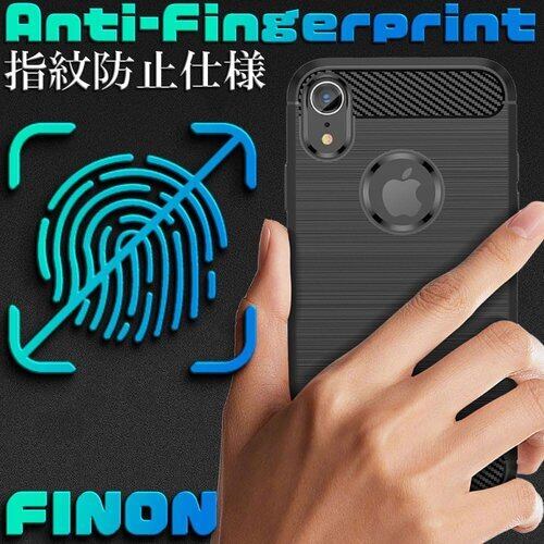 FINON for iPhone XR 用 ケース カバー スマホケース カーボン デザイン 指紋防止 薄型 軽量 耐衝撃 簡易脱着 ソフトケース ブラック 58