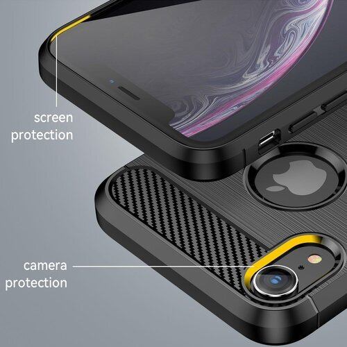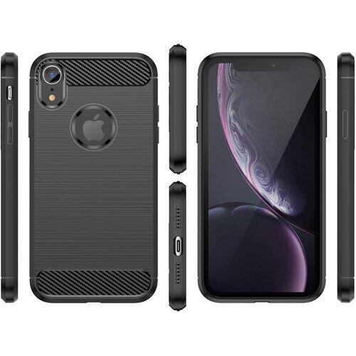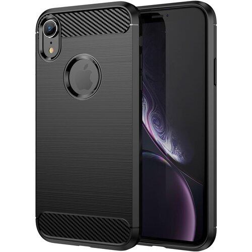 FINON iPhone XR 用 ケース カバー スマホケース カーボン デザイン 指紋防止 薄型 軽量 耐衝撃 簡易脱着 ソフトケース (ブラック)