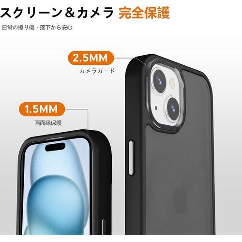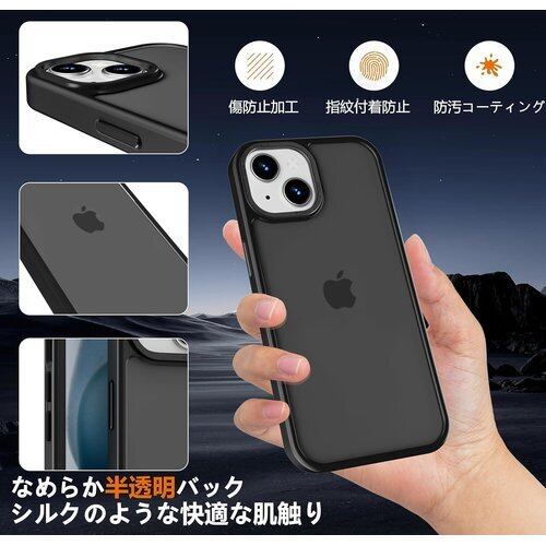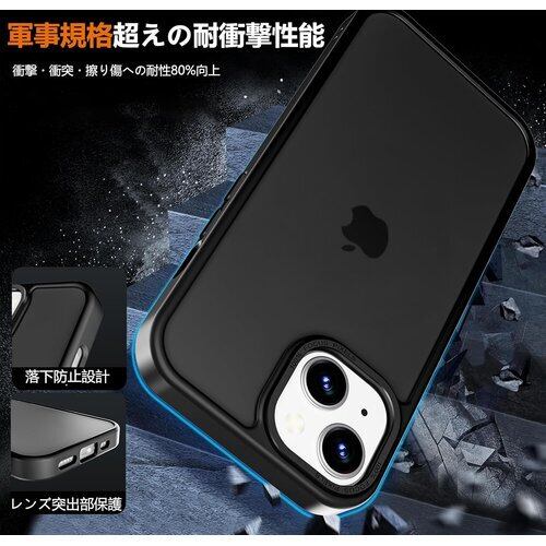 対応iPhone 13 mini ケース マット 半透明 金属ボタン 耐衝撃 肌に優しい触感 指紋防止 米軍MIL規格 黄変防止 ストラップホール付き スマホケース ブラック 63