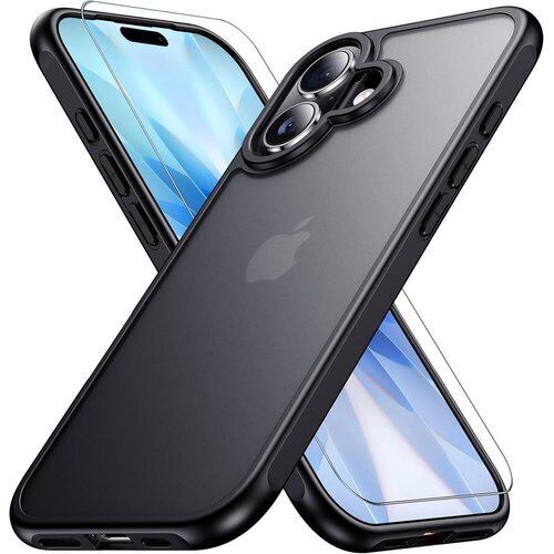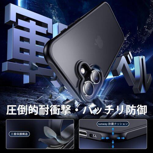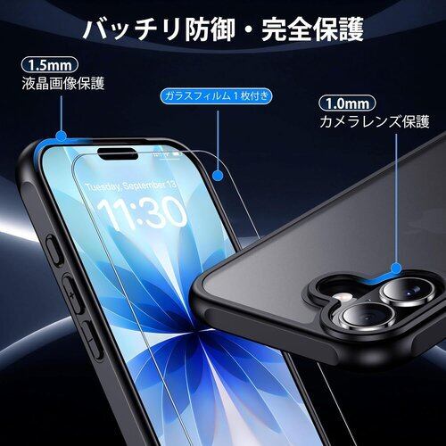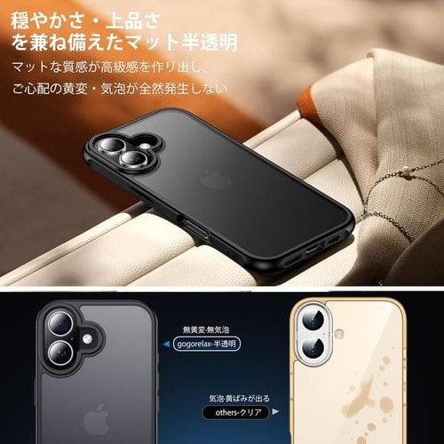 iphone 17 用 ケース 米軍MIL規格 指紋防止 ガラスフィルム付き 半透明 アイフォン17ケース 耐衝撃 アイホン17 用 スマホケース マット感 黄ばみなし あいほん17 用 ワイアレス充電対応 あいふぉん17 用 カバー ストラップホール付き マットブラック 6.3インチ gogorelax 81