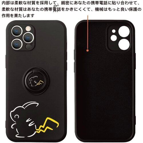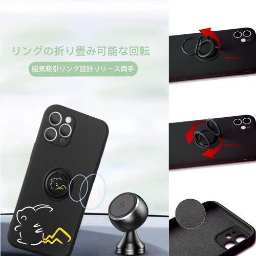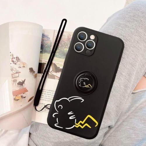 IPhone 17Pro Max用 携帯ケース リング付き ストラップ付き 耐衝撃 防塵 スマホカバー ブラック 可愛いキャラクター IPhone 17Pro Max 86