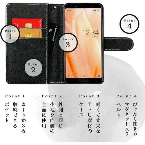 SH-03K SHV42 706SH AQUOS R2 用 手帳型 ケース カバー SH03K SHV42 706SH AQUOSR2 スマホケース 京のれん 漆黒 3