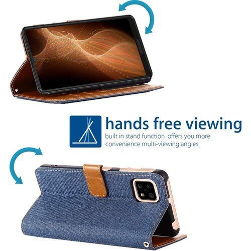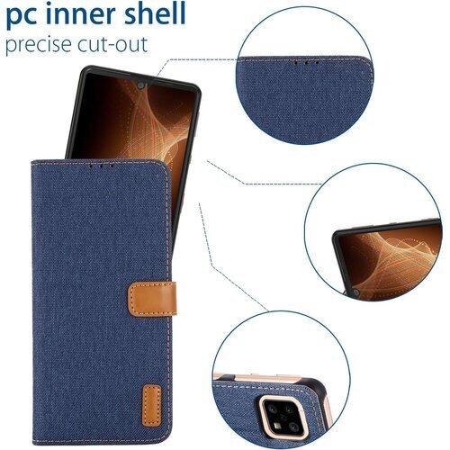 Viesa デニム ケース 手帳型 互換性 AQUOS sense4 lite basic SH-41A sense5G SH-53A SHG03 対応 SHARP 手帳ケース ダークブルー スマホケース シャープ アクオス センス5g センス4 sense5g BLUE 5