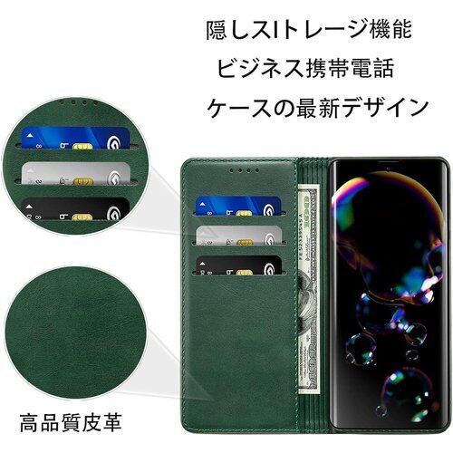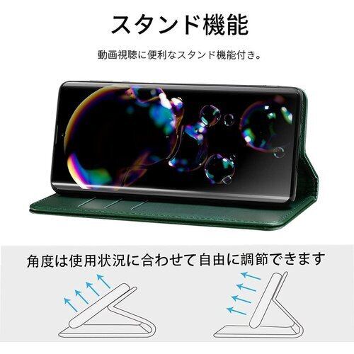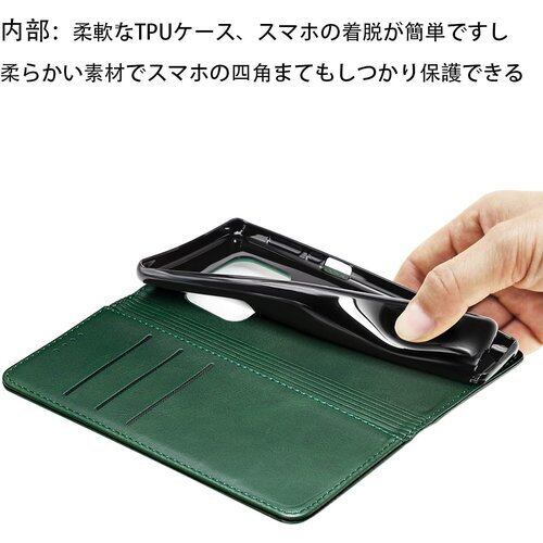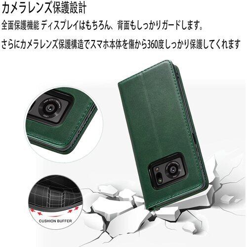 AQUOS R6 ケース 手帳型 SH-51B ケース PUレザー 内蔵マグネット 携帯 カバー スタンド機能 スプラット同梱 落ち着いた色 グリーン 9