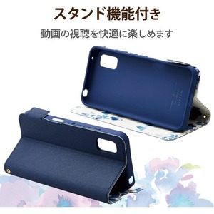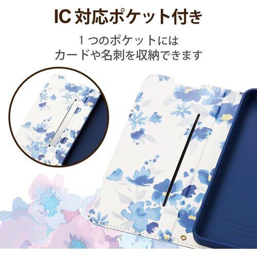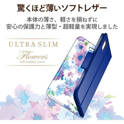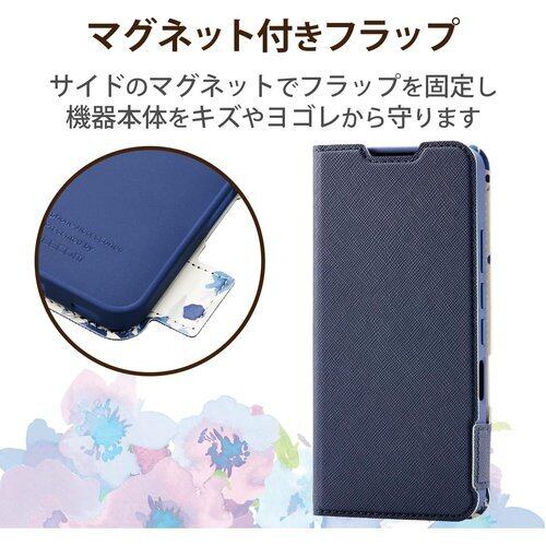 エレコム AQUOS wish2 SH-51C / wish SHG06 A104SH SH-M20 ケース カバー 手帳型 レザー 耐衝撃 マグネットフラップ 花柄 ケース内側 超軽量 薄型 UltraSlim Flowers ネイビー PM-S223PLFUJNV 17