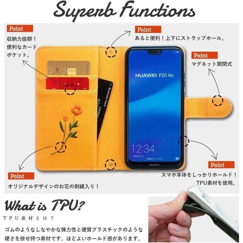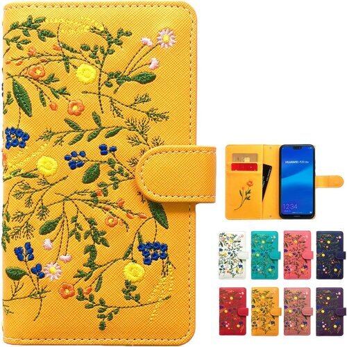 BASIO 4 KYV47 かんたんスマホ 2 A001KC 2+ A201KC 専用 ケース カバー ボタニカル 花 刺繍 手帳型ケース 手帳型カバー スマホ スマホケース スマホカバー ベイシオ 花柄 イエロー 40