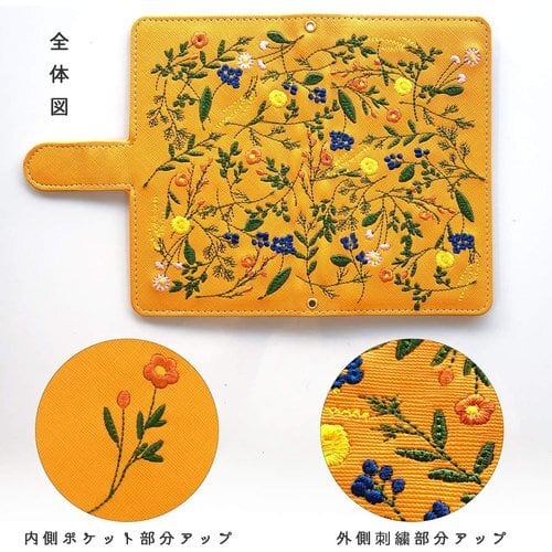厚みのあるレザーに綺麗なボタニカル柄の刺繍を施した、大人の雰囲気の可愛い手帳ケースです。