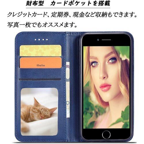 iPhone SE ケース 第3世代 手帳型 スマホケース se3 カバー iPhone7/8/SE2020/SE2022 4.7インチ対応 ブルー 44