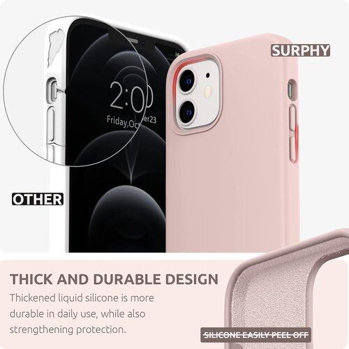 SURPHY iphone12 mini ケース シリコン5.4インチ対応 2020 アイフォン12 ミニ シリコンケース 耐衝撃 落下防止 防指紋 超軽量 全面保護 カバー ソフト ワイヤレス充電対応 ピンク 54