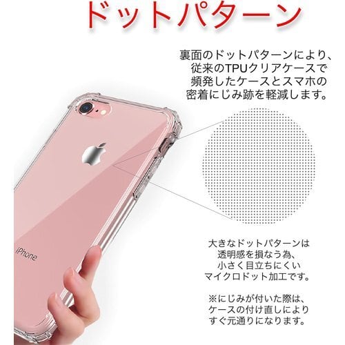 【密着にじみ跡防止ソフトケース】程良く柔軟なTPU素材で、スマホ本体をキズつけません。また付け外しも簡単です。単一素材で接着剤を使っておらず、ケースの水洗いが出来て衛生的にお使い頂けます。裏面のマイクロドット加工により、ケースとスマホの密着にじみ跡を軽減する事で、装着時の透明感を保ちます。