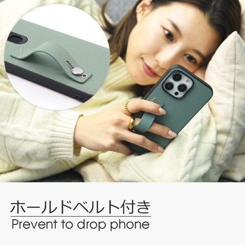 ケース背面にあるホールドベルトに指を通すことで、大きな端末もしっかり安定して持てます。 ホールドベルトを使用すると手と端末がしっかり固定できるため、親指の可動域が広がります。