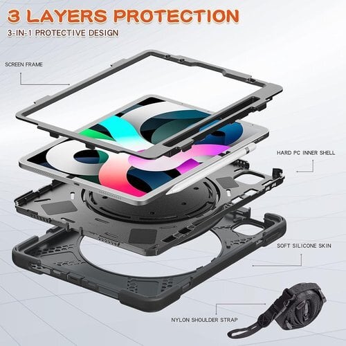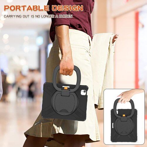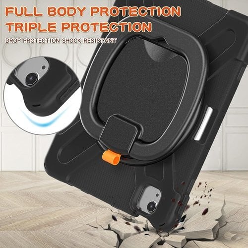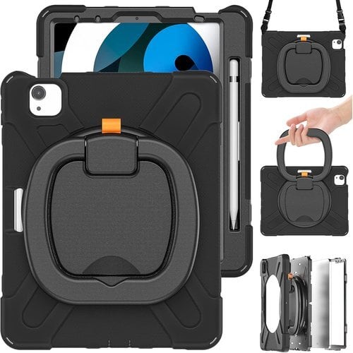iPad Air 11 2025/2024 /Pro11 第4 3 2 1世代/Air第4 5世代用 ケース 肩掛け ショルダーストラップ 360°回転ベルト スタンド ペンシル収納 レインボー 米軍MIL資格 耐衝撃 キッズ かわいい 子供 アウトドア リング 持ち手付き 黒 82