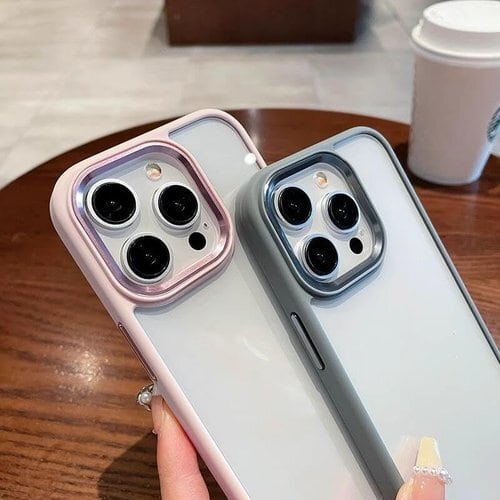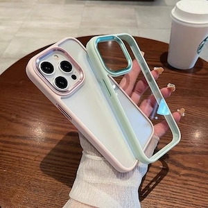 ツートンカラー:フレームと透明背面の配色でお洒落、ボタンとカメラの枠はメタルカラーで可愛い。