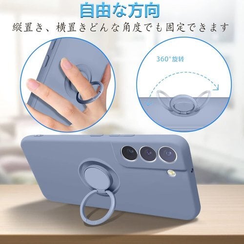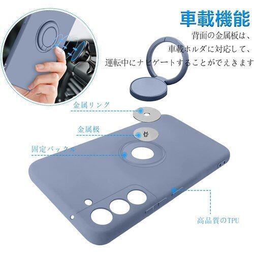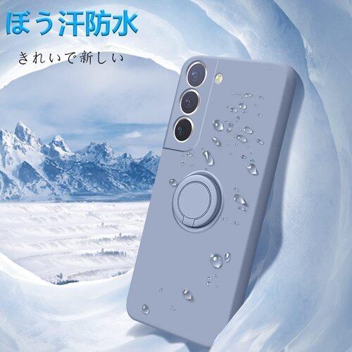 Galaxy S22 ケース リング付 SC-51C SCG13 リング スマホケース カバー マット感 液体シリコン 耐衝撃 レンズ保護 ソフト スタンド機能付き 360回転車載ホルダー グレー 257