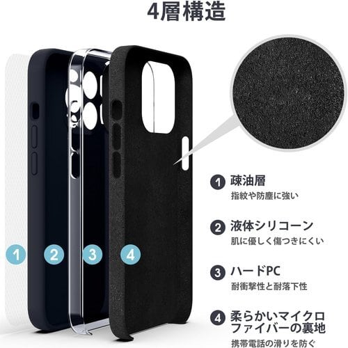 【耐衝撃・耐落下・キズ防止】iPhone 14 Pro Max 液状シリコンケース、4層プロセス【液状シリコンケース】【硬質PCボード】【マイクロファイバーパッド】【撥油層】で携帯を摩耗や損キズから守ります。
