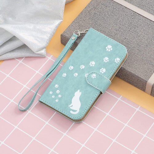for iPhone 14 ケース for アイフォン14 ケースカバー for iPhone14 カバー 手帳型 可愛い動物柄 ストラップ付き 猫の動物 可愛いストラップ付き スタンド機能付き iPhone14 6.1インチ A5-グリーン 263